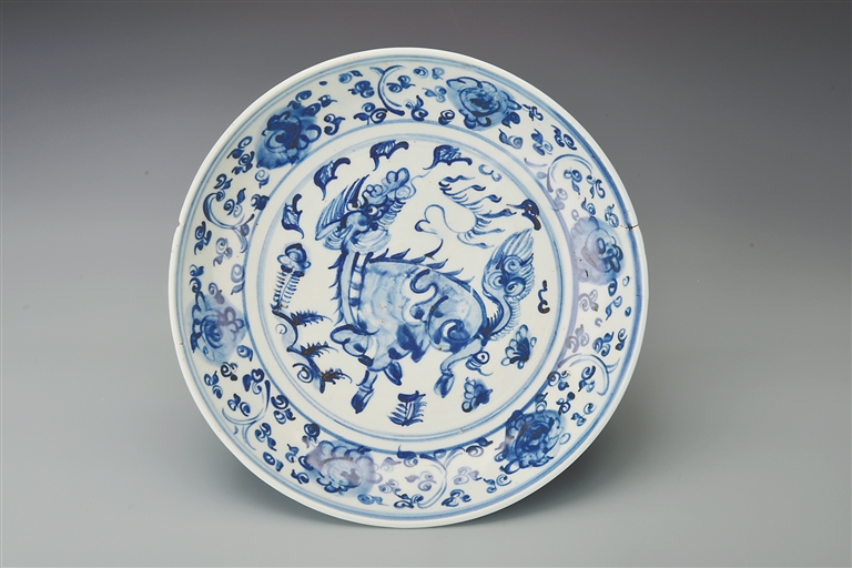 8月16日,当秋季的阳光照进中国(海南)南海博物馆的观景长廊,博物馆二楼“深蓝宝藏”展厅的玻璃展柜里,一件青花缠枝花卉麒麟纹盘(明代)在灯光下呈现出蓝白分明的明快色调。展签上“Blue-and-White Dish with a Qilin and Floral Scroll Motif”的字样吸引了不少孩子的目光。