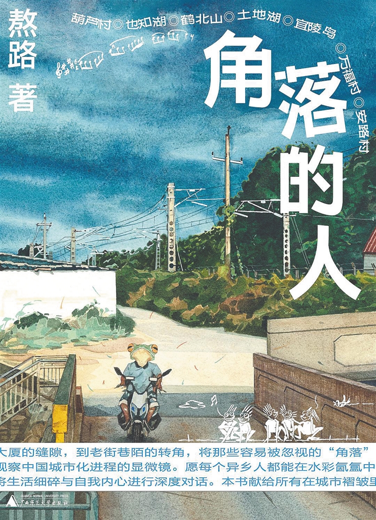 《角落的人》是一部用画笔和文字谱写的深情回忆录,映入眼帘的是一幅幅充满故事感的画面:骑着“小电驴”匆匆回家的钓鱼人、半开半阖的红色生锈大铁门、路边的西瓜摊、老工厂仓库,还有村口小卖部少人问津的公用电话……每一个场景都能唤起很多人心底深处的集体记忆,让我想起小时候的点点滴滴,那些被岁月尘封的过去瞬间涌上心头。