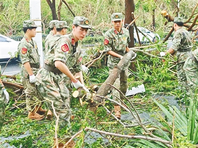 8月27日,三亚航空旅游职业学院师生组成救援队,开展街道清障。