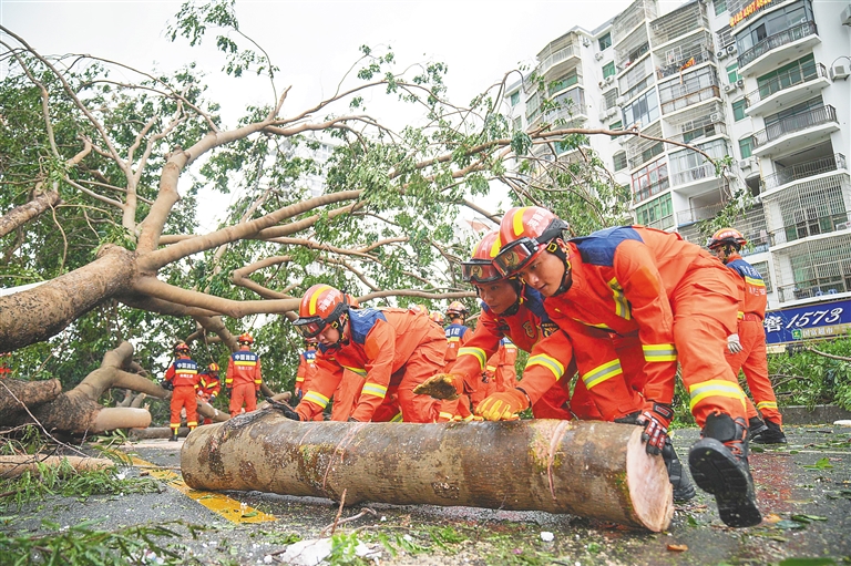 省直单位400名党员干部开展道路清障、设施修复、交通疏导等多项任务;万宁“娘子军”、屯昌“小屯妹”“大昌叔”在三亚街头扛起铁锹、手持油锯,在断枝横亘的道路上奋力清理;海口、文昌、琼海等地支援的消防救援人员、电力抢修人员、环卫工人等尽管汗流浃背、手上磨出血泡,重建家园的脚步未曾放慢……
