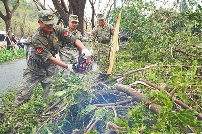 将党旗插到抗风救灾的最前沿。三亚数千名党员“双报到”投入抢险救灾志愿服务,深度参与恢复重建。金鸡岭路,三亚西岛女子民兵连连长、党员孙美欣和队友们手持砍刀,为老百姓的顺畅通行“劈”开了一条道。