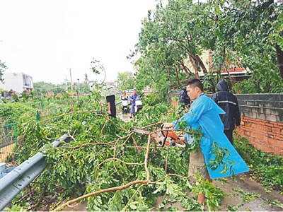 台风离去后,乐东境内树叶树枝、淤泥和生活垃圾等不断增多,对居民的出行造成一定程度的影响,县园林中心第一时间组织环卫工人、清运车辆和机械工具进行清理,疏通道路环境,及时恢复干净整洁的辖区环境。“我们加班加点多做一点,就能让街道尽快干净整洁起来。”县园林绿化管理中心党员干部陈运完说。