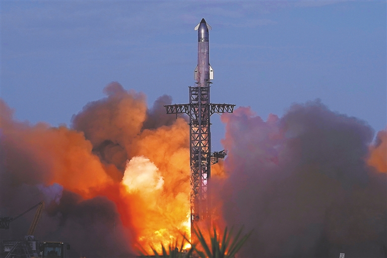 太空探索技术公司直播画面显示,美国中部时间26日18时30分许(北京时间27日7时30分许),“星舰”从位于得克萨斯州南部的发射基地升空。两分多钟后,火箭第一级“超级重型”助推器和第二级飞船成功分离。助推器随后完成返航燃烧,并在预定海域实现受控溅落。