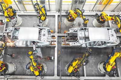 记者日前走进郑州比亚迪工厂看到,一排排机器人紧密协作,经过冲压、焊装、涂装、总装、测试等环节,一辆辆新款比亚迪宋L DM-i陆续驶下生产线。