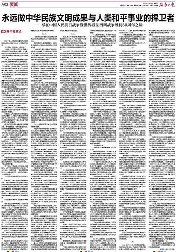 永远做中华民族文明成果与人类和平事业的捍卫者