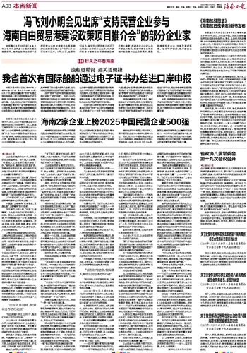 冯飞刘小明会见出席“支持民营企业参与 海南自由贸易港建设政策项目推介会”的部分企业家