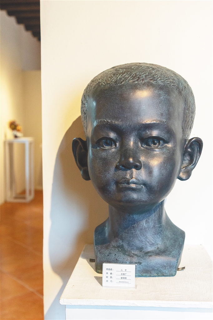 这是王德广此次参展作品中唯一的写实作品,是他在儿子上幼儿园的时候创作的。他告诉海南日报全媒体记者,起初他为这件作品取名《志大》,寓意期待儿子有远大志向。“因此这件作品虽是写实主义风格,却也可以从他的神态中看出父母的期待。”他说。
