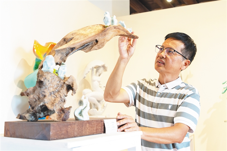 除了雕塑,王德广还喜欢摄影,拍晚霞、拍木棉花、拍菩提榕……他的镜头总能发现城市的“新风景”。“搞艺术的人,可以多种艺术形式都涉猎,都是为了呈现美。”他告诉记者,艺术是相通的,《乡野趣事》陶瓷部分的创意就来源于舞蹈照片。