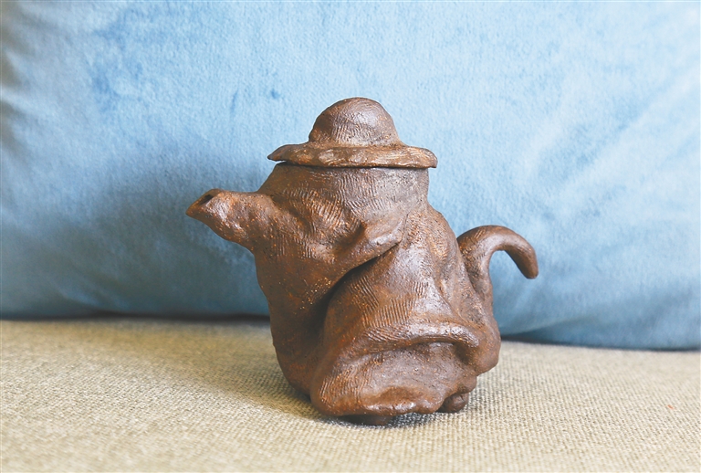 王德广爱喝茶,但喝来喝去,发现茶壶都长得差不多。所以就想结合自己的专业制作一些不一样的壶。“用雕塑语言来做壶,既有实用性,又有雕塑感。”