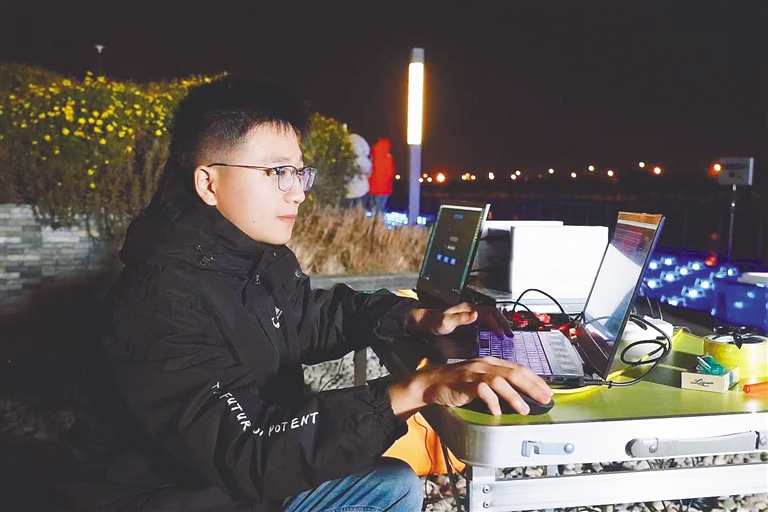 让创意和数字技术完美融合是飞行规划员必备的技能。飞行规划员除了要熟知各类机型性能,还得熟练掌握三维算法,才能通过写代码和程序对无人机的运行路径编程,让机群在空中形成流畅的立体图案。“我们现在不是面对单机,而是要让成百上千架无人机协同表演,这个难度还是很大的。”肖霆称,在群飞表演时,每架无人机之间都要间隔1.8米以上,还要精确到秒的位置跟灯光的变换,包括它的飞行逻辑跟美感也得保证,所以编程就必须做到精细扎实、滴水不漏。