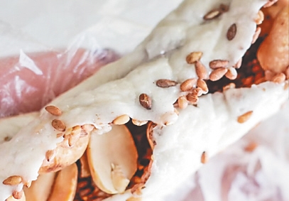 说起来,李老伯算得上是海口老街最年长的“网红”了。六十年前,他带着制作叮咚糖的手艺,从一海之隔的广东只身闯海口,大半辈子都以制作、售卖叮咚糖为生。什么是叮咚糖?这种糖的馅料是芝麻粒和花生碎,外面裹着一层白色糖衣,卖糖时需将糖坯扯断,嚼起来有些黏牙,味道又甜又香又脆。