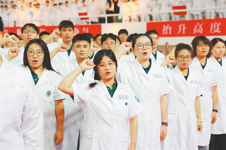 ①在海南医科大学2025年新生开学典礼上,新生在宣誓。海南日报全媒体记者 陈若龙 摄