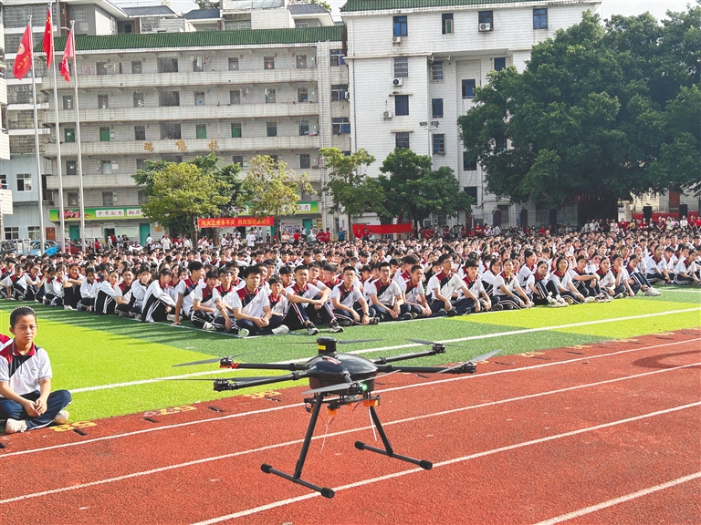 ③海口市海瑞学校开学典礼无人机表演。海南日报全媒体见习记者 鲁佳垚 摄