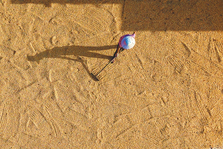 金秋时节,瓜果飘香、田野金黄,农民忙着收获劳动的果实。