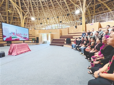 五指山上云缠翠峰,毛纳溪畔绿意浓浓。9月3日上午,五指山市水满乡毛纳村气氛热烈,村民身着黎族苗族传统服饰,聚集在宝山竹屋剧场,共同观看纪念中国人民抗日战争暨世界反法西斯战争胜利80周年大会直播。