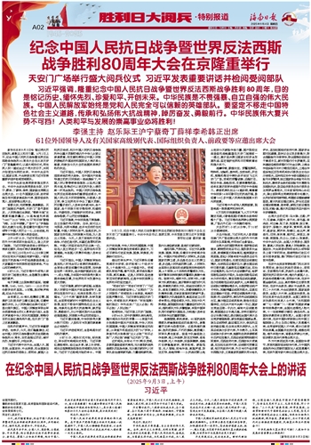 纪念中国人民抗日战争暨世界反法西斯 战争胜利80周年大会在京隆重举行