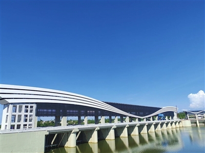 最近,海口市南渡江龙塘大坝枢纽改造工程(以下简称龙塘大坝)标志性建筑“腾飞之翼”完工。这一建筑,由钢材和蜂窝铝板构成,四条优美的曲线结构跨越河流两岸,其设计灵感来源于南渡江边的海鸥。