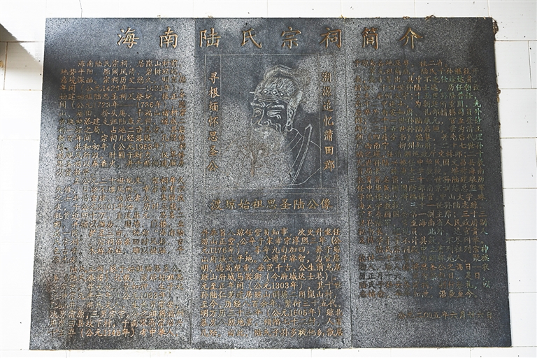 根据海南乡土文化研究人士的粗略统计,除吴、李、符、陈、王等总人口达数十万人的“大姓氏”之外,海南岛上还有数十个总人口不足两万人的“小姓氏”。陆氏便是其中之一,目前全岛总人口约1.6万人,其发祥地位于海口市美兰区三江镇崑山村一带。南宋时期,来自福建的陆思圣赴海南任职,先后在文昌、琼山地区为官,晚年定居于琼山府城。他的孙辈迁至崑山村一带定居,从此开启了陆氏一族在海南繁衍生息的历史。