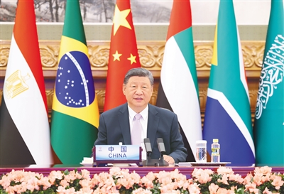 习近平指出,当前,世界百年变局加速演进,霸权主义、单边主义、保护主义甚嚣尘上。金砖国家作为全球南方第一方阵,要坚持弘扬开放包容、合作共赢的金砖精神,共同捍卫多边主义,维护多边贸易体制,推进“大金砖合作”,携手构建人类命运共同体。