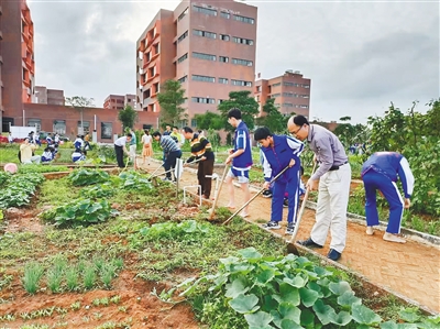 “新的展示平台搭好了,以后可以在不同时间举办播种节、收获节活动。”近日,在海南师范大学定安平和思源实验学校(以下简称平和思源学校),校长钟新涛看着校内劳动教育基地合耕园新砌的展示台介绍,从播种到收获,未来孩子们在学校进行特色劳动教育的全过程都可以在这里直观呈现。这是近年来平和思源学校特色劳动教育成果的一个缩影。