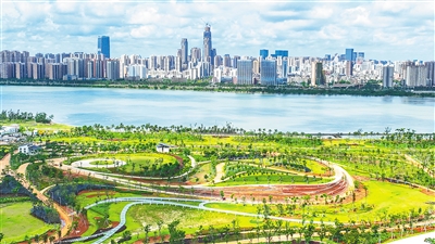 航拍海口南渡江门户公园。 (资料图)