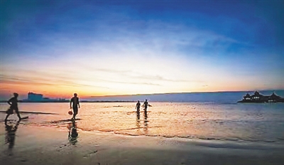 呵,美丽的海湾,欢乐的笑脸,椰风飘香,波涛海韵,无论是久居于此的海南人,还是操着各种口音的“候鸟”们,辽阔的南海,蓝色的疆域,永远是我们共同的美丽家园。