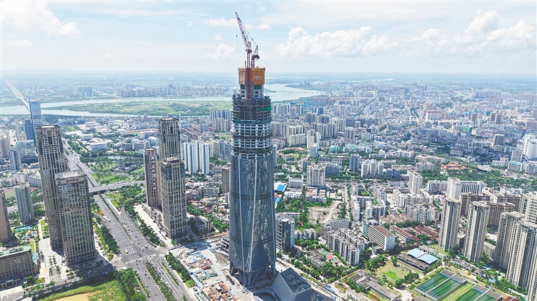 自贸港地标性建筑、“海南第一高楼”海南中心项目,塔楼核心筒已施工至86层,建设高度达363.1米,正全力冲刺2026年底达到竣工验收条件的总目标。