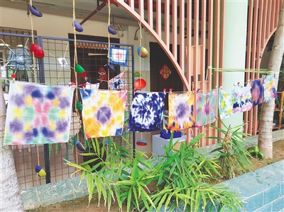 “除了扎染课,我们还教孩子们织黎锦、跳竹竿舞等,将本土特色艺术融入教学活动中。”育才中心幼儿园副园长张雪婷对记者说,这是该园“大山”课程体系的重要内容之一。