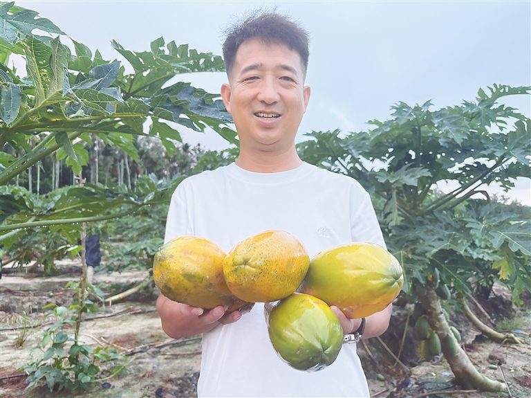 通过优化田间管理、提升木瓜品质,汪斌才的木瓜种植事业蒸蒸日上。2018年,其木瓜种植面积为700亩,年产量约700万斤;2021年,种植规模扩大到了1000亩,年产量近1000万斤;2023年,汪斌才更是将木瓜种植规模扩大到了1700多亩,成为三亚的木瓜种植大户。