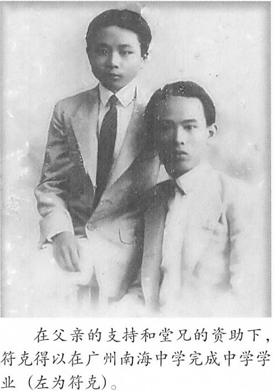 符克故居保留着一张符克使用过的长书案。据符曼芳回忆,她曾听祖母和母亲讲,父亲符克很喜欢读书,经常读书到深夜。“外公在昌洒群英学堂和彰善小学读书时,学习很勤奋。”李华影补充道。正如《琼崖侨魂——追寻抗日英烈符克和琼崖华侨回乡服务团的足迹》一书记载,年少时的符克早已显露出了家国担当,他被选任为乡童子团团长,带领伙伴们站岗放哨、传递情报等,即便年纪尚小,他站在台上发言也从容不怯。