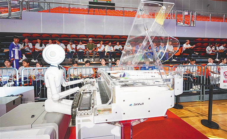 一名学生好奇地问:“机器人是如何看懂乐谱的呢?”活动现场工作人员王立民解释,依托先进的软件算法,机器人犹如拥有一个“超级大脑”,能够精准解析乐谱,并灵活控制头、手、脚等部位每个关节的运动。未来,他们将朝着机器人研发的更深领域进军,努力让机器人的动作、表情更接近人类,带来更逼真的互动体验。