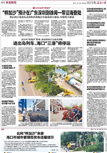 台风“桦加沙”来袭 海口市城市管理局发布温馨提示