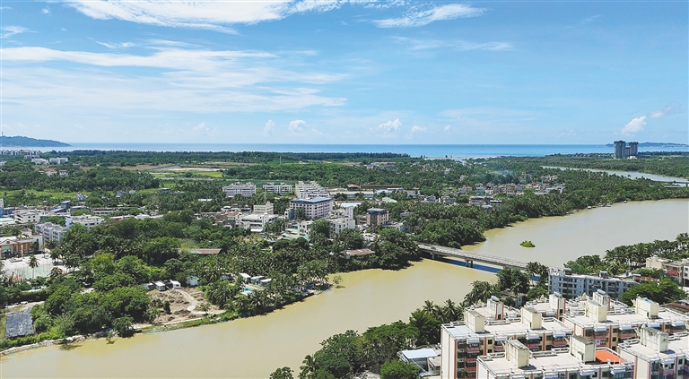 9月23日,在三亚市海棠区南田社区,70岁的退休干部温文冲正在自家的芒果园里察看果树的长势。他不时望向不远处流过的藤桥河,清澈的河水静静流淌,岸边植被青翠,水鸟穿梭其间……这景象,好似一幅生动的油画,描绘着美丽乡野和河畔人家的生活。
