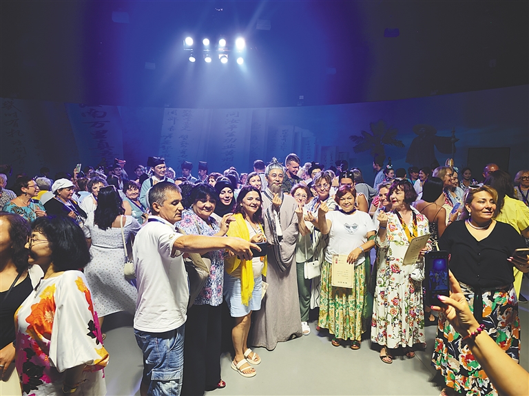 “演出从头到尾我都很喜欢,东坡先生朗诵的古诗我在10年前也学过,听到这首诗好像回到了以前的时光,这让我特别感动。”来自阿塞拜疆的游客姗姗说,演出的最后,她拿到了“东坡先生”为她颁发的“毕业证书”,这让她特别激动。