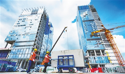 近日,位于海口西海岸的中国海油深海能源开发总指挥部基地项目现场,工人全力推进玻璃幕墙安装、室内装修及机电安装等工作。据了解,该项目是中国海油在海南启动的一项集科研、实验、办公等为一体的综合性基地项目。目前,项目整体进度完成88%,预计今年年底完工,明年6月投用。图/文 海南日报全媒体记者 陈元才 通讯员 徐昕