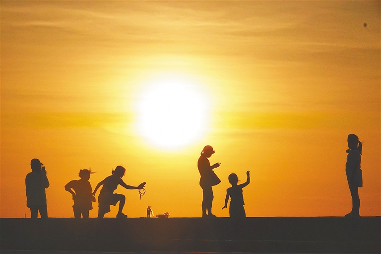 海南洋浦港的落日美景吸引了众多游客驻足拍照。 海南日报全媒体记者 陈元才 摄
