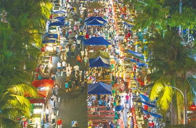 ①10月2日晚,海口海大南门夜市灯火璀璨,人潮涌动。市民游客纷纷前来享受多样美食。海南日报全媒体记者 李天平 摄