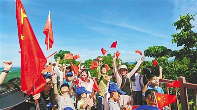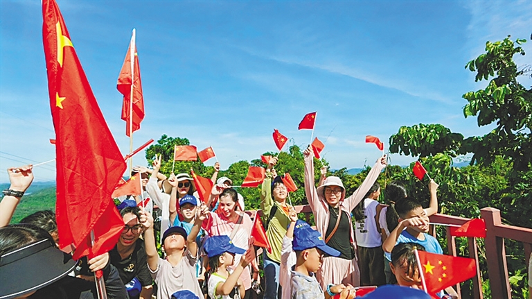 ②国庆中秋假期,儋州市举办“寻迹大仙岭·绘梦黎乡情”活动。图为游客结伴攀登大仙岭。(主办方供图)