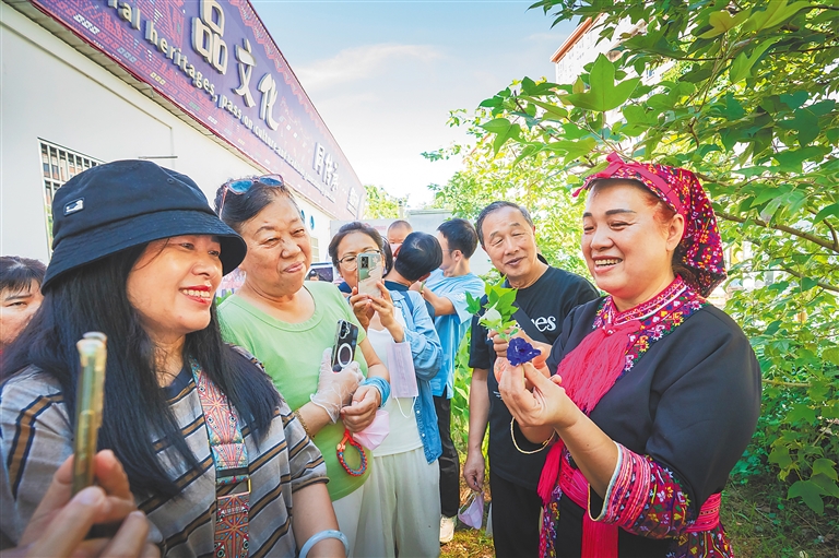 10月4日上午,五指山市开展了“有颜色的非遗”海南苗族五色饭制作技艺体验活动。