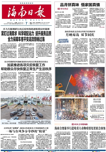 随着台风影响逐渐减弱,琼州海峡各轮渡航线6日迅速恢复运行。当天下午,在秀英港码头泊位和新海港人车分离区,现场工作人员为司机们发放保障物资,引导待渡车辆有序登船。冯飞现场了解新能源车、大货车等过海情况,向一线工作人员和志愿者表示感谢,并与待渡旅客、司机深入交流,祝愿他们归途顺利、中秋快乐。
