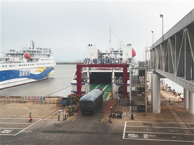 13时40分许,汽笛声响起,满载的“信海19”轮缓缓驶离码头,几名工作人员开始整理绳索,准备迎接新的船舶到来。不远处的待渡区,新一批车辆仍在有序排队。