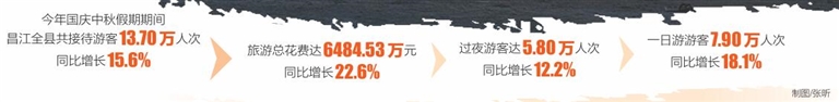 数据也印证了这一事实。据统计,“双节”期间,昌江一日游游客7.90万人次,同比增长18.1%;一日游花费2181.92万元,同比增长18.6%。全县经营性住宿单位入住率68.52%,同比增长4.45个百分点;23家旅游饭店中,有12家入住率达80%以上。