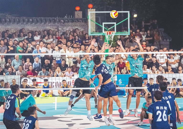 10月11日晚,屯昌县2025年排球联赛(屯昌“村VA”)在该县乌坡镇青梯村火热进行。屯昌“村VA”比赛从10月4日持续到10月26日,来自全县的10支队伍将分为南北两个赛区进行比拼,丰富百姓文化生活,激发乡村发展活力。海南日报全媒体记者 李天平 摄