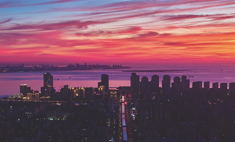 海口拥有低纬度、长日照、优良空气质量等天然生态优势,全年可观赏晚霞天数超280天,海岸线湾岬相间,为“晚霞经济”发展提供优质土壤。每逢霞光满天,从云洞图书馆的海岸边到荣山寮的沙滩上,从骑楼老街的百年天台到东坡老码头的海上游船,到处都有“追霞者”的身影。发挥资源优势,探索符合海口特色发展路径,不仅可培育新的消费增长点,也将为海南国际旅游消费中心建设注入新元素,为全国各地滨水城市打造“晚霞经济”提供示范样本。