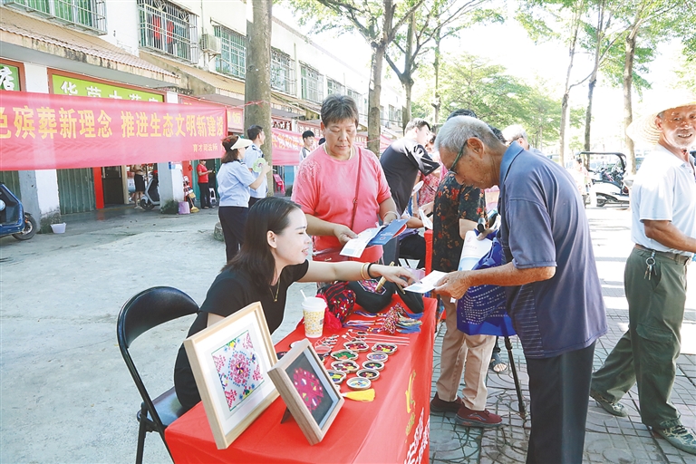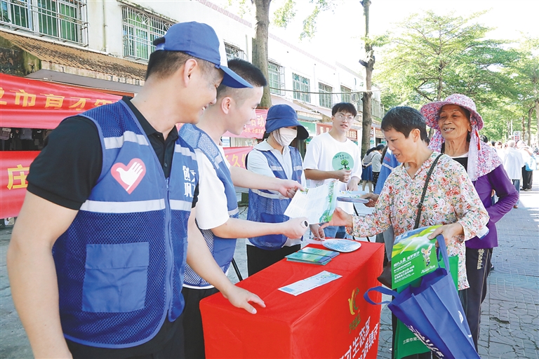 逛文明集市,享志愿服务。育才生态区还创新活动形式,常态化开展文明集市实践活动,设置禁塑宣传、法律援助、健康咨询等10余个特色“摊位”,送上“志愿服务大礼包”,“一站式”满足群众的多样化需求。“我们在文明集市实践活动中特别加入了招聘‘摊位’,让群众可以一边享受志愿服务一边找到心仪的工作,解决就业需求。”陈泽恩说,截至目前全区累计开展8期文明集市实践活动,现场参与人数超1200人次。
