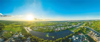 日前,俯瞰澄迈县金江镇塘北村,国能海垦澄迈塘北村光伏产业振兴项目现场一排排光伏板堆砌起错落有致的“梯田”,在阳光照射下源源不断地把太阳能转化为电能。文/海南日报全媒体记者 邓钰 图/海报集团全媒体中心记者 蒙美顺