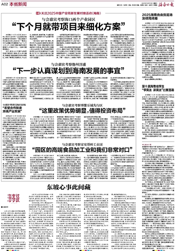 对自贸港政策了解越多,对海南的兴趣就越大。“我们计划在海南打造一个贸易集聚的基地,把集团以及关联企业在大湾区的贸易业务迁至海南,同时设立进口材料初加工厂,利用‘加工增值30%免关税’政策打通内地市场,形成‘海南结算+湾区联动’的产业闭环。”深圳市城市产业发展集团投资总经理杨发智透露,“下个月就带项目来细化方案。”