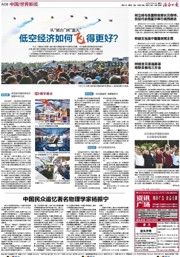 业内人士还建议,进一步推动研发制造、服务运营、基础设施建设等协同发展,让低空经济蕴含的潜能早日转化为更多现实生产力。