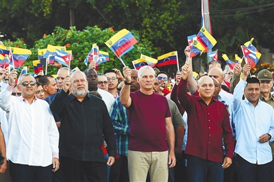 10月17日,5万多名古巴民众聚集在首都哈瓦那总统大道的西蒙·玻利瓦尔雕像前,抗议美国军事威胁委内瑞拉,表达对委内瑞拉人民和政府的坚定支持。