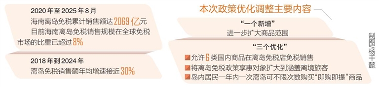 据介绍,2020年至2025年8月,海南离岛免税累计销售额达2069亿元,是2011—2019年累计销售额的3.8倍;目前海南离岛免税销售规模在全球免税市场的比重已超过8%;从2018年到2024年,离岛免税销售额年均增速接近30%。离岛免税购物已成为海南自贸港的“金字招牌”,为推动我省经济社会发展,支持旅游消费提质升级作出了重要贡献。